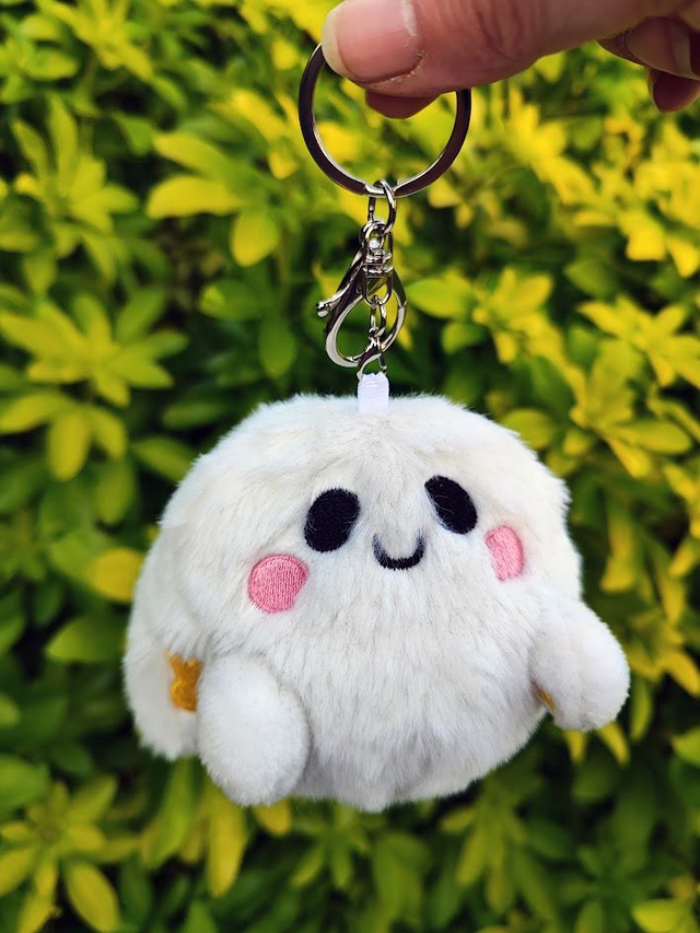 Your favourite ghost plush but small! Carry a friendly ghost friend with you wherever you go. Finished with silver tone hardware so you can attach them to your favourite bag.